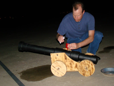 here's the fireworks! Marc has a little cannon, it doesn't really shoot anything, just makes a loud boom / lighting powder on fire.